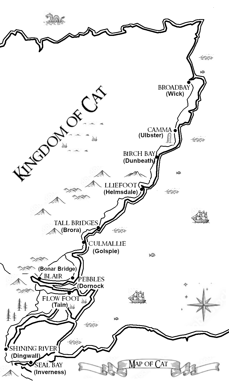 The map on the left appears in the second book and is reproduced here to allow the reader to see how Bethran's Cat relates to the real world.